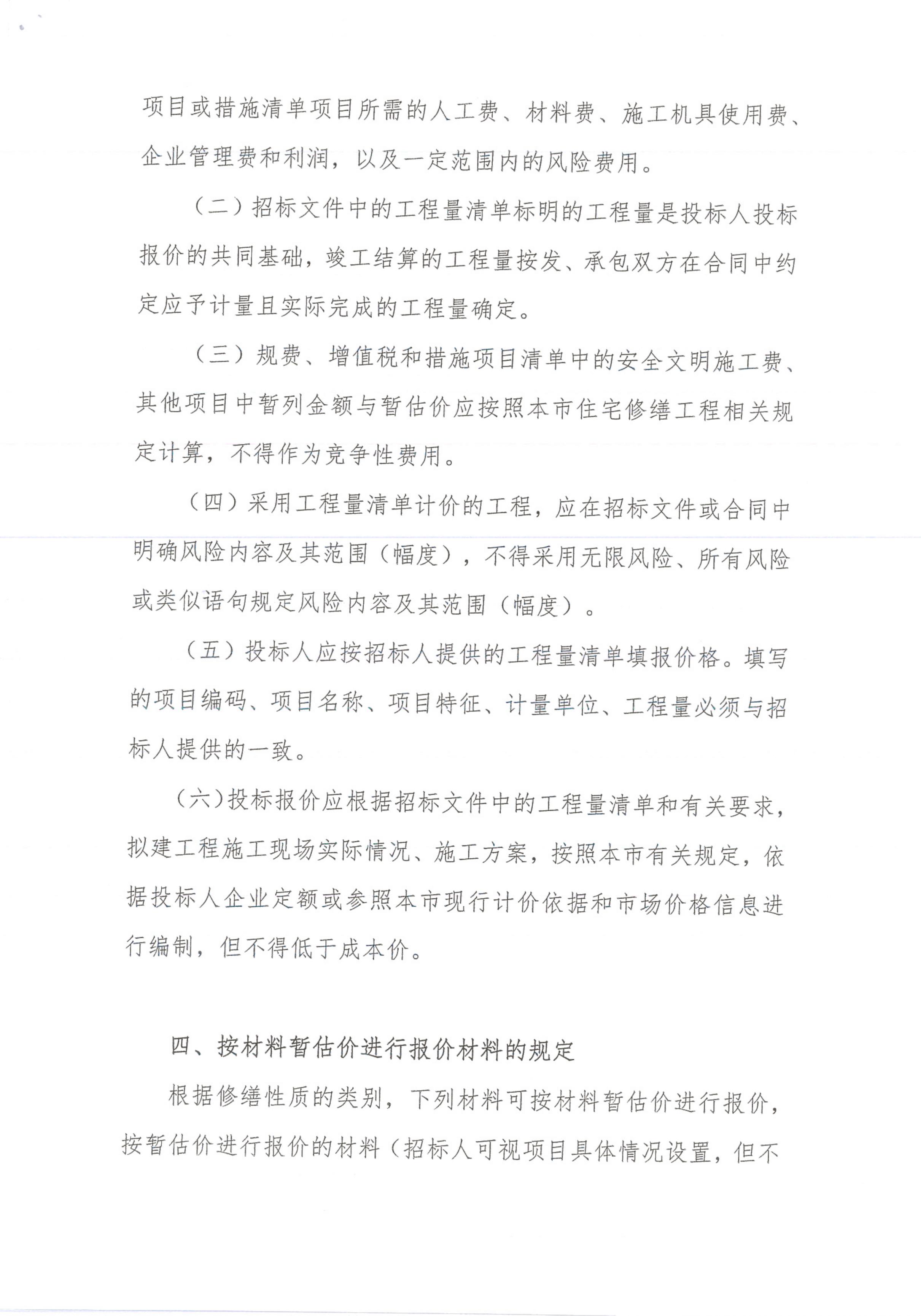 关于本市住宅修缮工程招标采用工程量清单计价的通知